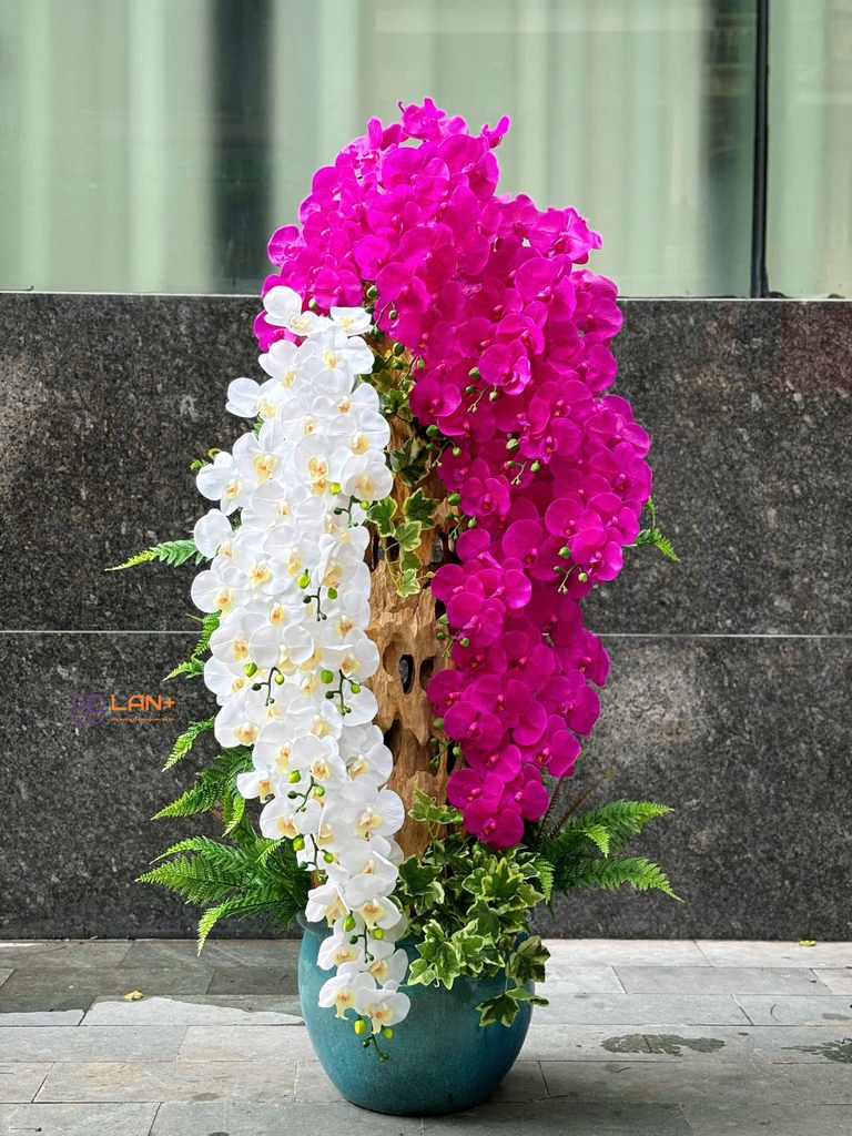 Chất liệu: Chậu chất liệu composite cao cấp, nhập khẩu chống đỗ vỡ. Lan chất liệu cao su non cao cấp.